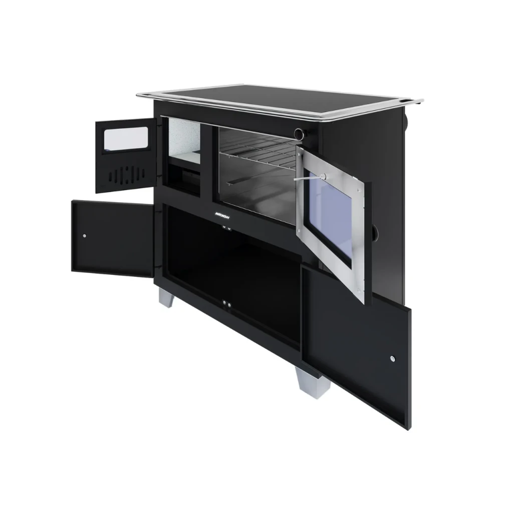 Perfecto para quienes buscan una Cocina a leña eficiente, con horno, panel vitrocerámico y la tecnología de chapa con visor vitrocerámico, que brindan practicidad y elegancia a tu hogar.